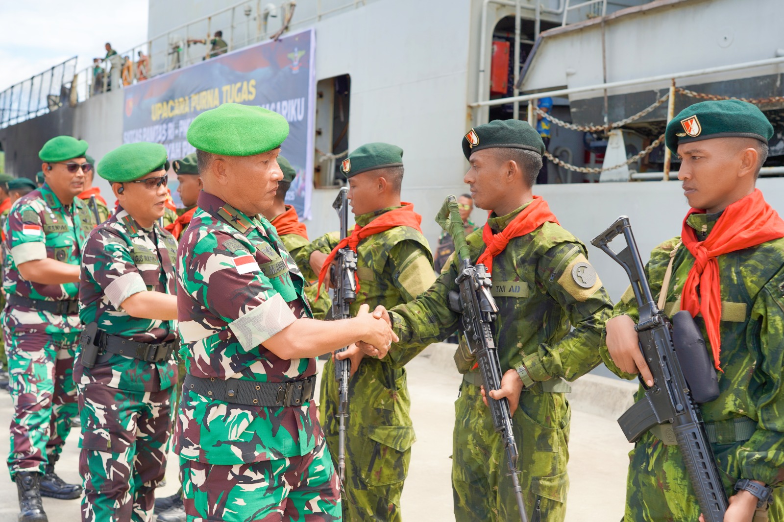 Ambon,Kabarsulsel-lndonesia.com. Sabtu, 26 Desember 2025 – Upacara Purna Tugas Satgas Pamtas RI-PNG Mobile Yonif 733/Masariku yang menjalankan tugas di wilayah Papua Tahun 2025 telah dilaksanakan pada hari ini pukul 11.00 WIT di Dermaga Ksatrian Tawiri Guspurla Koarmada III, Kecamatan Teluk Ambon, Kota Ambon. Selaku pimpinan upacara adalah Kasdam XV/Pattimura Brigjen TNI Nefra Firdaus S.E., M.M.