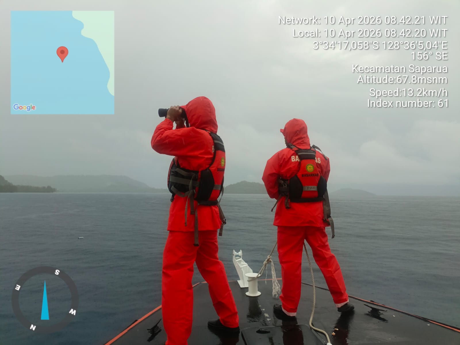 Ambon,Kabarsulsel-lndonesia.com. Jumat (10/4/2026). Kepala Kantor SAR Ambon menyampaikan, memasuki hari kedua Ops SAR, Tim SAR Gabungan kembali melanjutkan pencarian korban disekitar Perairan Pulau Saparua. Sejak pukul 7 pagi Tim SAR Gabungan dikerahkan menyisir sejumlah titik koordinat sesuai SAR MAPS yang sudah ditentukan. Upaya Pencarian korban terus dilakukan walau ditengah hujan dan kabut disekitar Perairan Pulau Saparua.