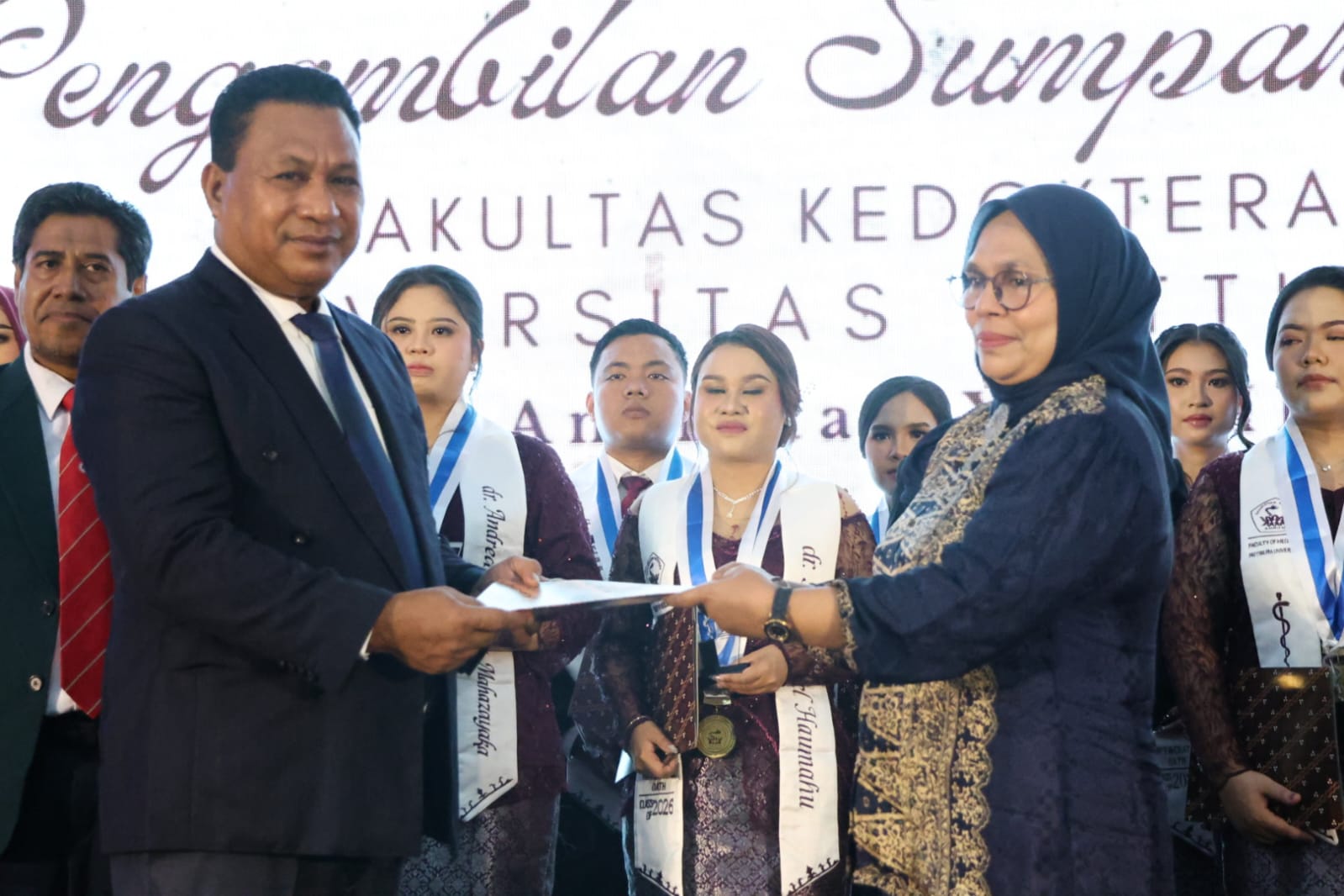 Dalam sambutannya, Wakil Gubernur Maluku menyampaikan bahwa dari sekian banyak forum yang dihadirinya, acara pengambilan sumpah dokter kali ini memiliki atmosfer yang berbeda dan penuh makna, karena menandai lahirnya tenaga kesehatan profesional yang akan mengabdi kepada masyarakat.