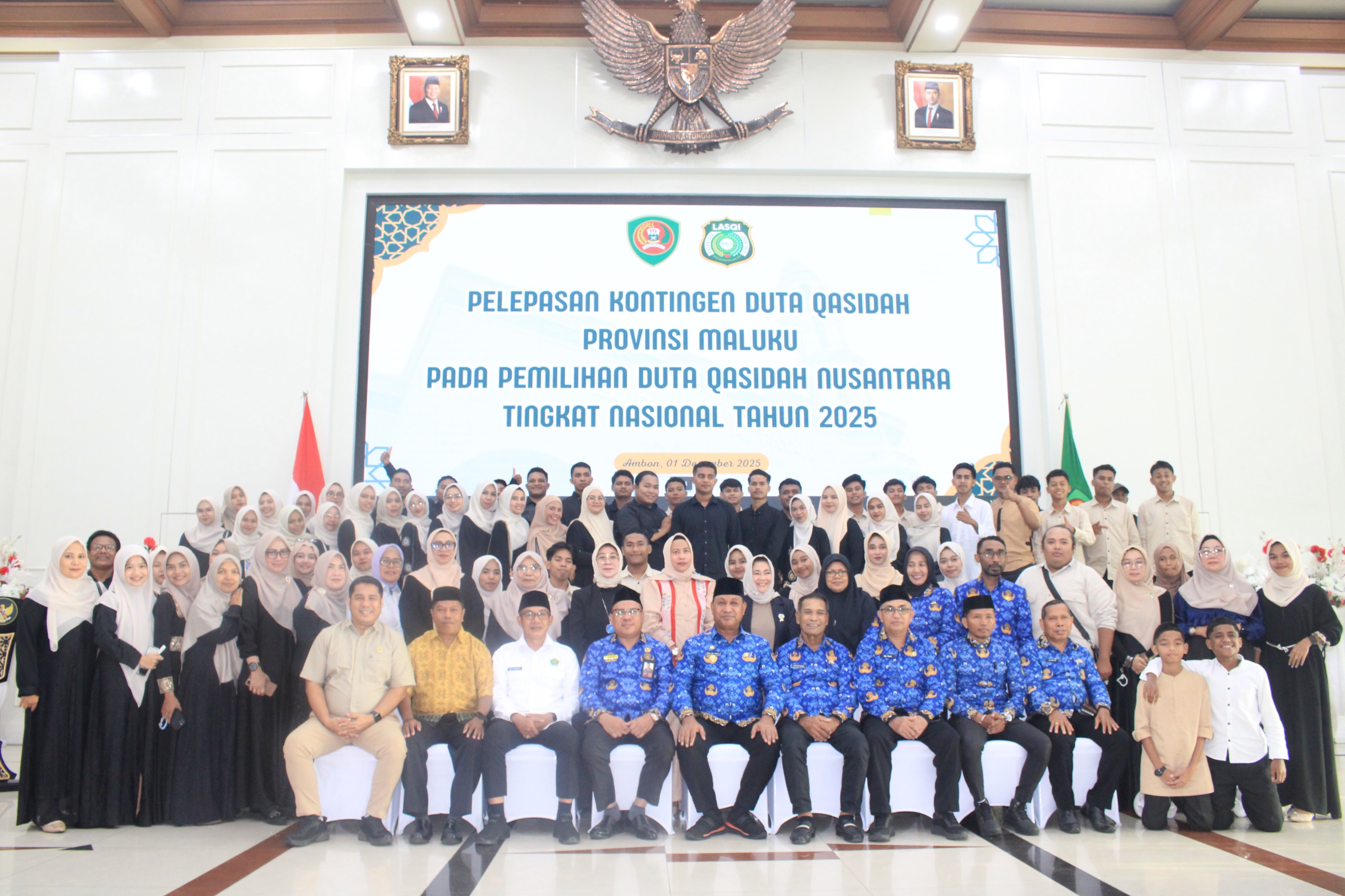 Ambon,Kabarsulsel-lndonesia.com. Wakil Gubernur Maluku, Abdullah Vanath, hari ini secara resmi melepas Kontingen Duta Qasidah Provinsi Maluku, Pada Pemilihan Duta Qasidah Nusantara tingkat Nasional Tahun 2025 yang akan berlaga di kejuaraan tingkat nasional di Bogor, bertempat di Lantai Tujuh Kantor Gubernur Maluku. Senin (1/12/2025)