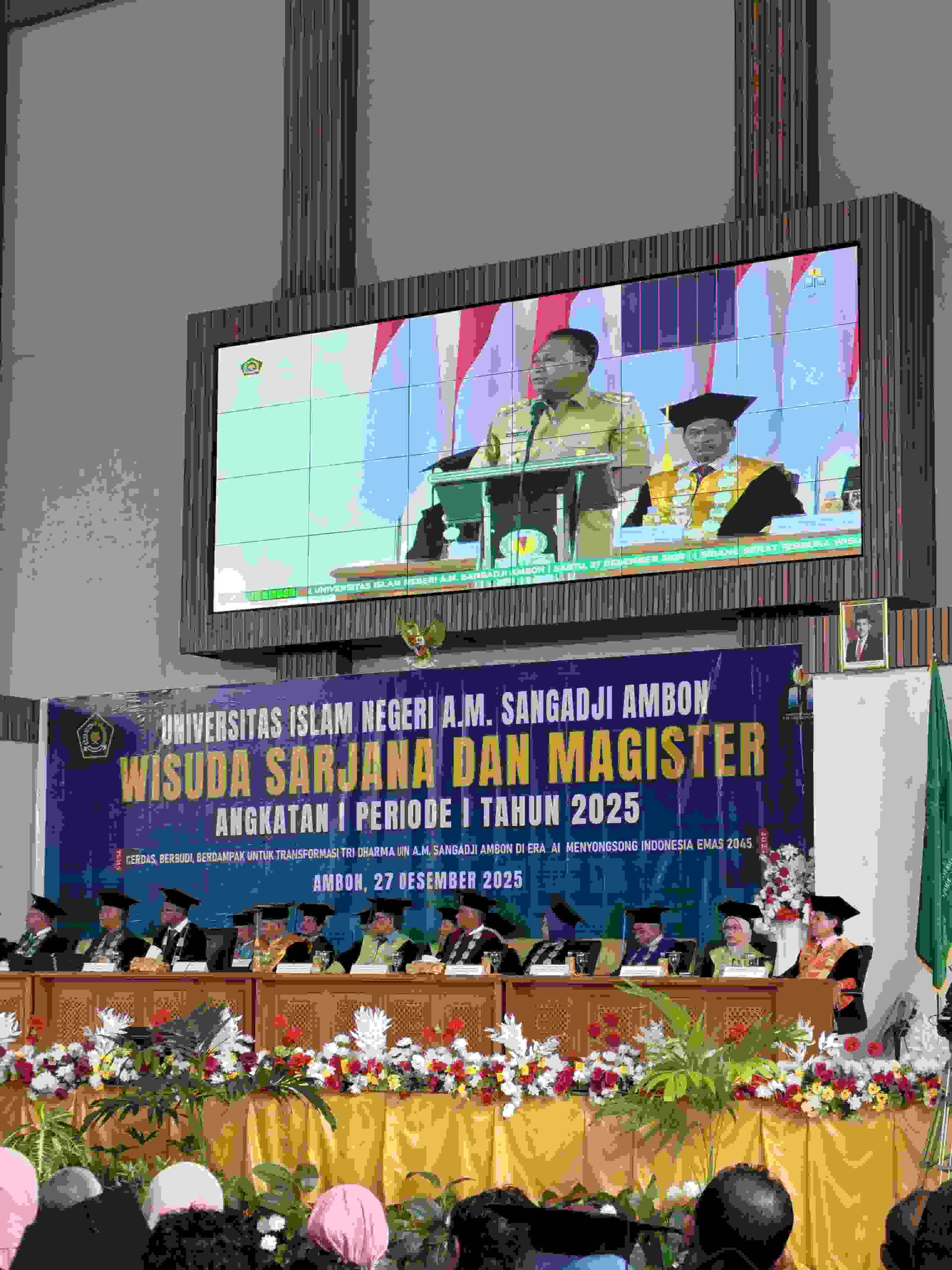 Wakil Gubernur Maluku, Abdullah Vanath, menghadiri Wisuda Sarjana dan Magister Angkatan I Periode I Universitas Islam Negeri (UIN) A.M. Sangadji Ambon yang digelar di Auditorium kampus setempat, Sabtu (27/12/2025).