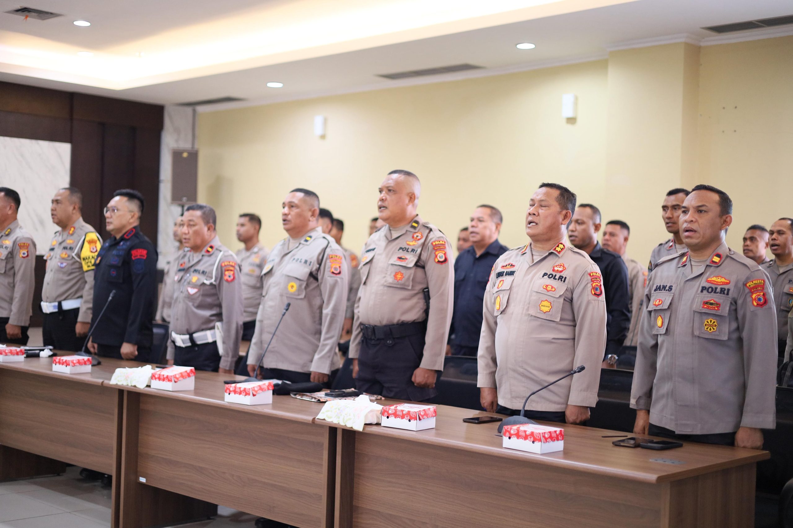 Kegiatan ini dihadiri Dir Pamobvit, Auditor Kepolisian Tingkat III Itwasda Maluku, para Pejabat Utama Polda Maluku, serta seluruh personel yang terlibat dalam pengamanan BHF 2025.