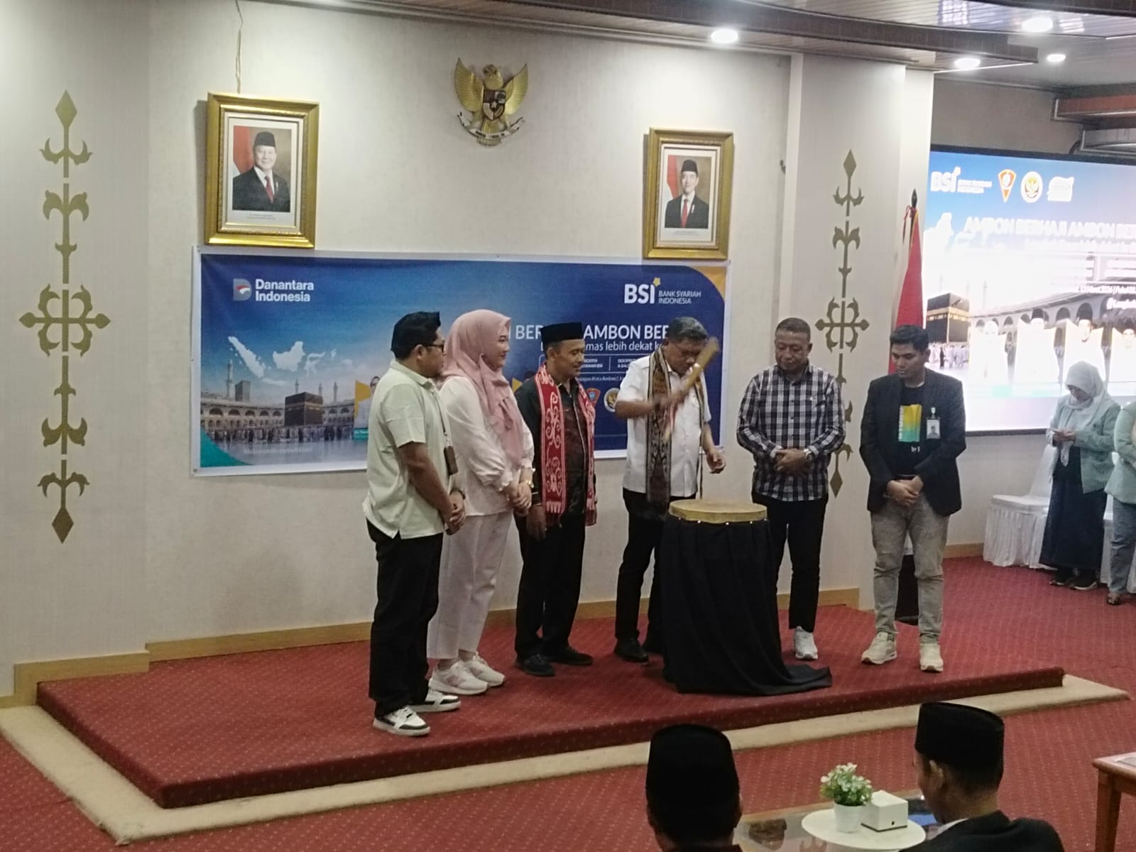 Ambon,Kabarsulsel-Indonesia.com. Walikota Ambon, Bodewin Wattimena, menghadiri  sekaligus membuka kegiatan Ambon Berhaji, Ambon Berkah yang diselenggarakan oleh PT Bank Syariah Indonesia (BSI) Cabang Ambon dengan Pemerintah Kota Ambon, di Ruang Vlisingen Balai Kota Ambon, Jumat (13/3/2026).