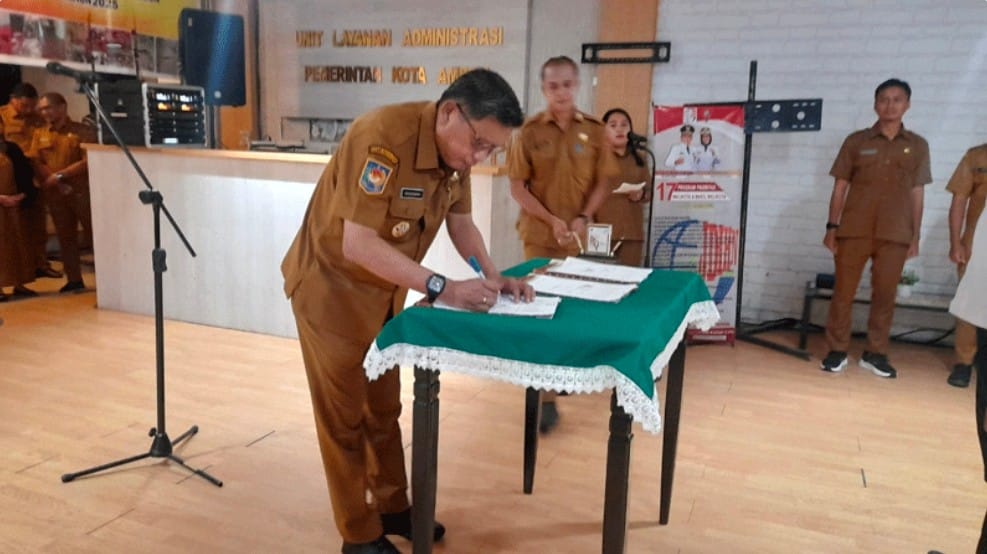 Memorandum of Understanding (MoU) ditandatangani Wali Kota bersama Ketua Pengadilan Agama Kota Ambon, Sharul Fahmi, dan Kepala Kanwil Kemenag Kota Ambon, H.R.A. Fachrurrazy Hassannusi, Senin (4/8/2025), di Balai Kota.