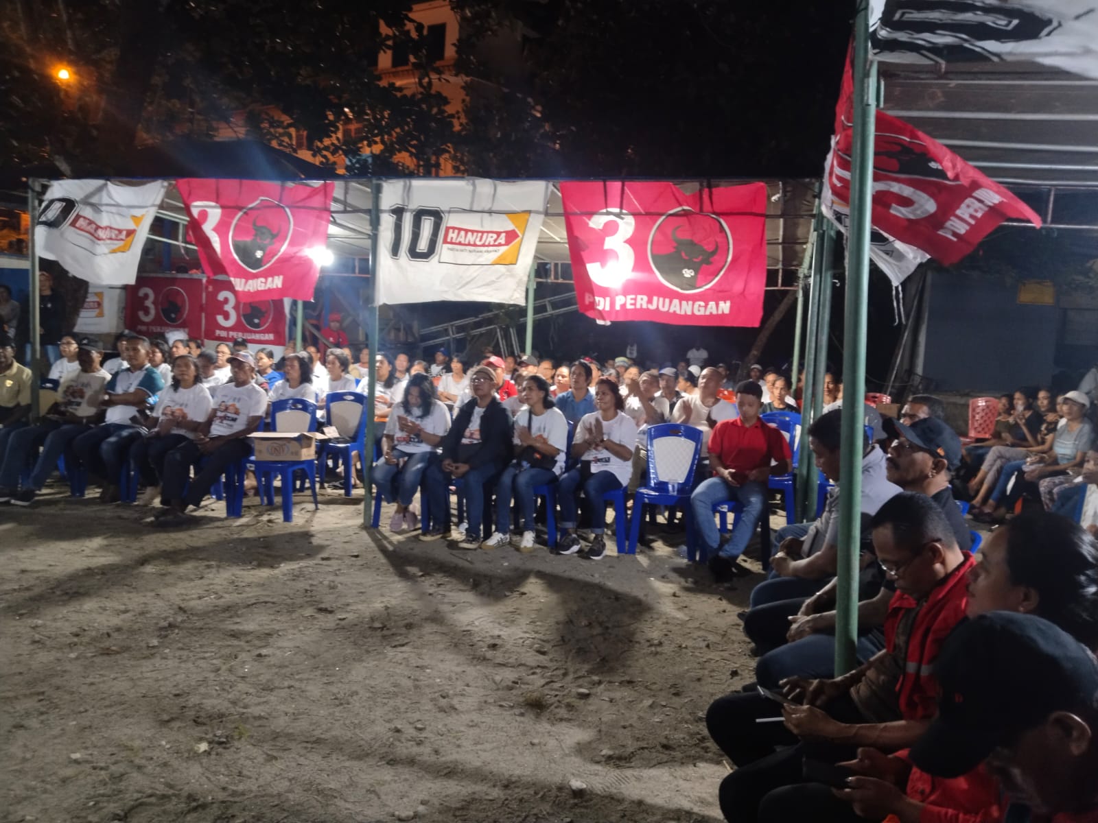 Ambon.Kabarsulsel.Indonesia.com.Ketua DPD PDI-P yang juga Ketua DPRD Provinsi Maluku Benhur George Wattubun, bersama Tim Koalisi calon Gubernur Maluku JAR, menggelar Kampanye di Amahusu, kecamatan Nusaniwe kota Ambon, Rabu (23/10/2024)